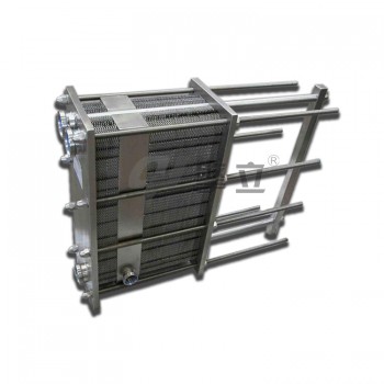 板式換熱器是由一系列具有一定波紋形狀的金屬片疊裝而成的一種新型高效換熱器。各種板片之間形成薄矩形通道,通過板片進(jìn)行熱量交換。板式換熱器是液—液、 液—汽進(jìn)行熱交換的理想設(shè)備。它具有換熱效率高、熱損失小、結(jié)構(gòu)緊湊輕巧、占地面積小、安裝清洗方便、應(yīng)用廣泛、使用壽命長等特點(diǎn)。在相同壓力損失情況 下,其傳熱系數(shù)比列管式換熱器高3-5倍,占地面積為管式換熱器的三分之一,熱回收率可高達(dá)90%以上。