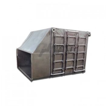 熱管余熱回收器是燃油、煤、氣鍋爐專用設(shè)備,安裝在鍋爐煙口或煙道中,將煙氣余熱回收后加熱空氣,熱風(fēng)可用作鍋爐助燃和干燥物料。其構(gòu)造如圖所示:四周管箱,中間隔板將兩側(cè)通道隔開,熱管為全翅片管,單根熱管可更換。工作時,高溫?zé)煔鈴淖髠?cè)通道向上流動沖刷熱管,此時熱管吸熱,煙氣放熱溫度下降。熱管將吸收的熱量導(dǎo)致右端,冷空氣從右側(cè)通道向下逆向沖刷熱管,此時熱管放熱,空氣吸熱溫度升高。余熱回收器出口煙氣溫度不低于露點。