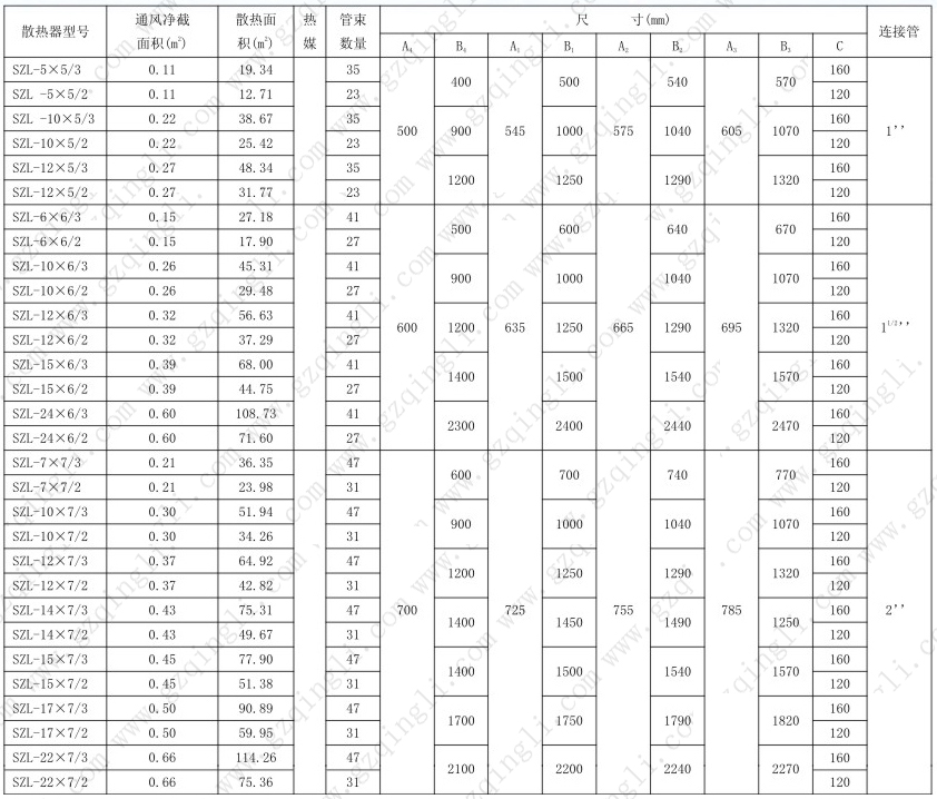 SZL型散熱器技術(shù)參數(shù)(可定制)