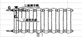 具體做法是在靠近支管的第一片散熱器上增加一個(gè)調(diào)節(jié)閥 ,使其成為一個(gè)“三通散熱器” ,利用第一片散熱器本身作“跨越管” ,使散熱器兼有跨越管和三通調(diào)節(jié)閥的作用(如圖 5)。