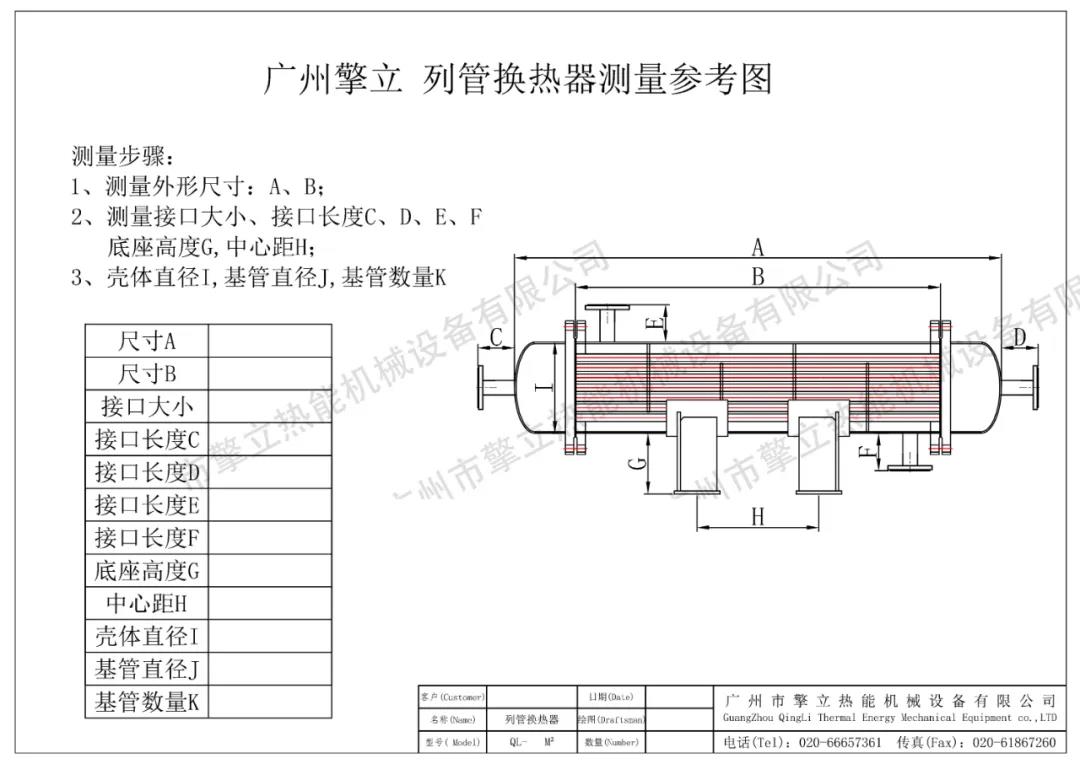 列管換熱器測(cè)量主要需要知道殼體直徑,殼體厚度,基管直徑、材質(zhì),進(jìn)出接口大小和中心距