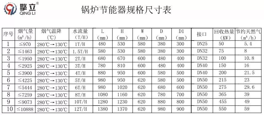 五、鍋爐節(jié)能器常規(guī)尺寸